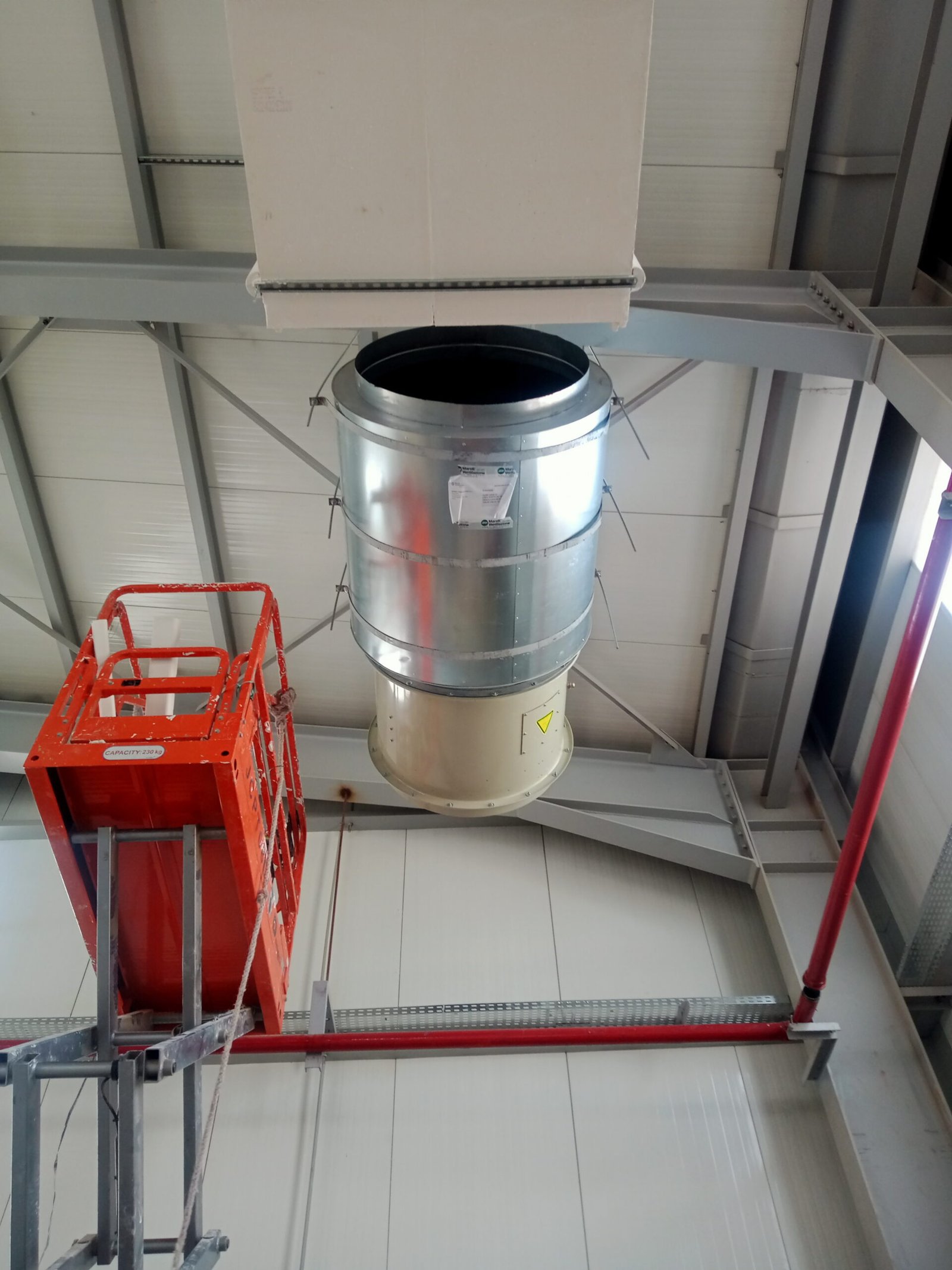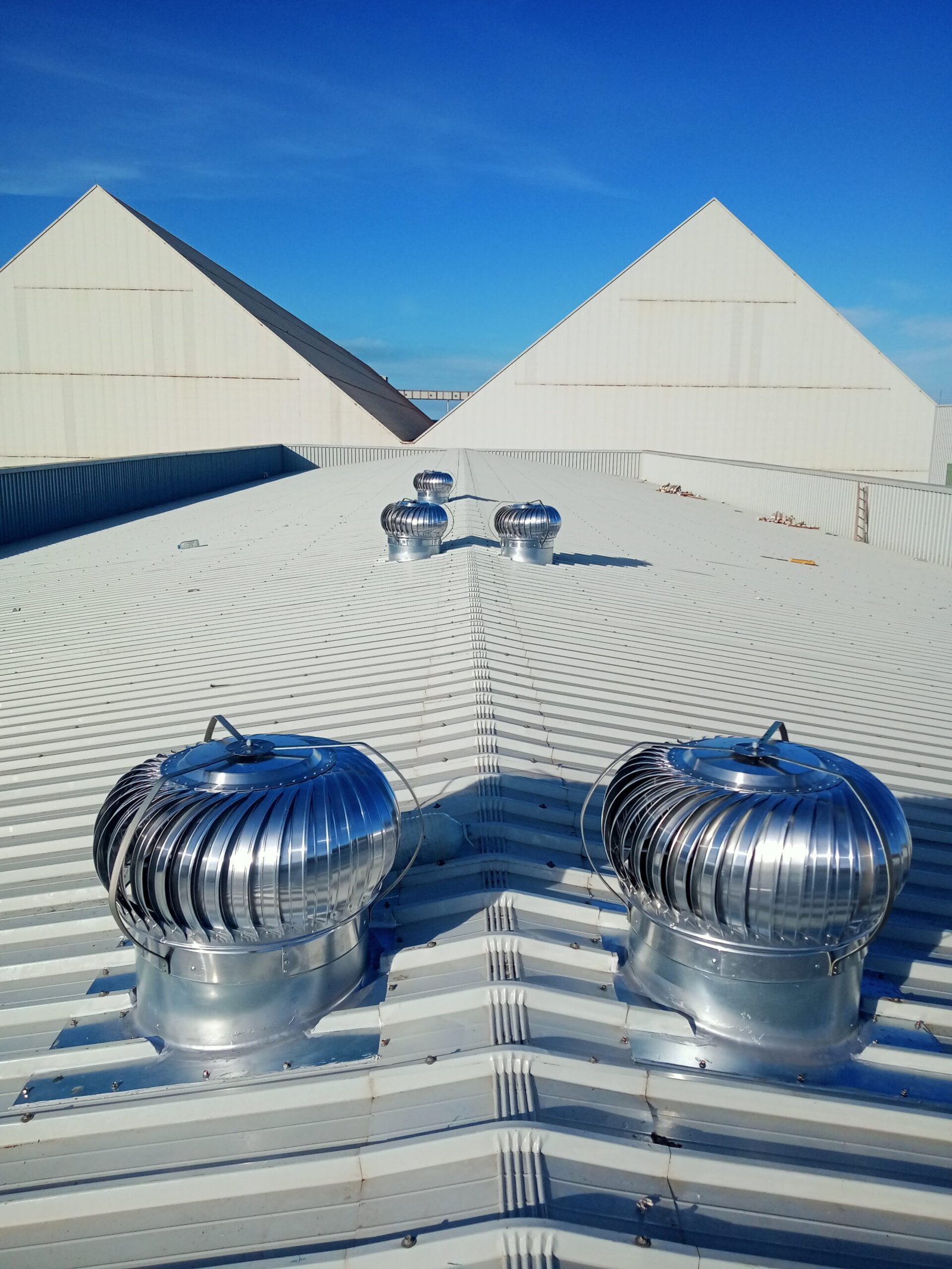 • Désenfumage par 04 caissons extraction Hélicoïdal ATEX, 16 Extracteurs (non motorisés) Type Eolien.